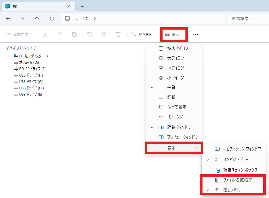 【Windows 11】拡張子と隠しファイルを表示する設定