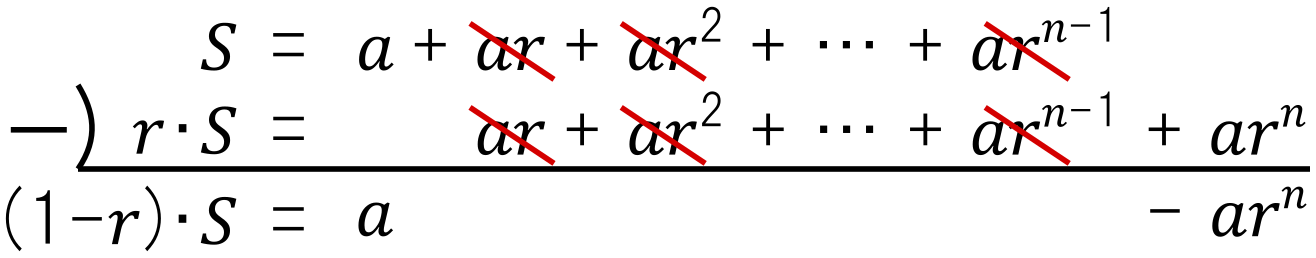 まず,次図のように「総和 “$S$” と “$r \cdot S$” の差」を考えます.