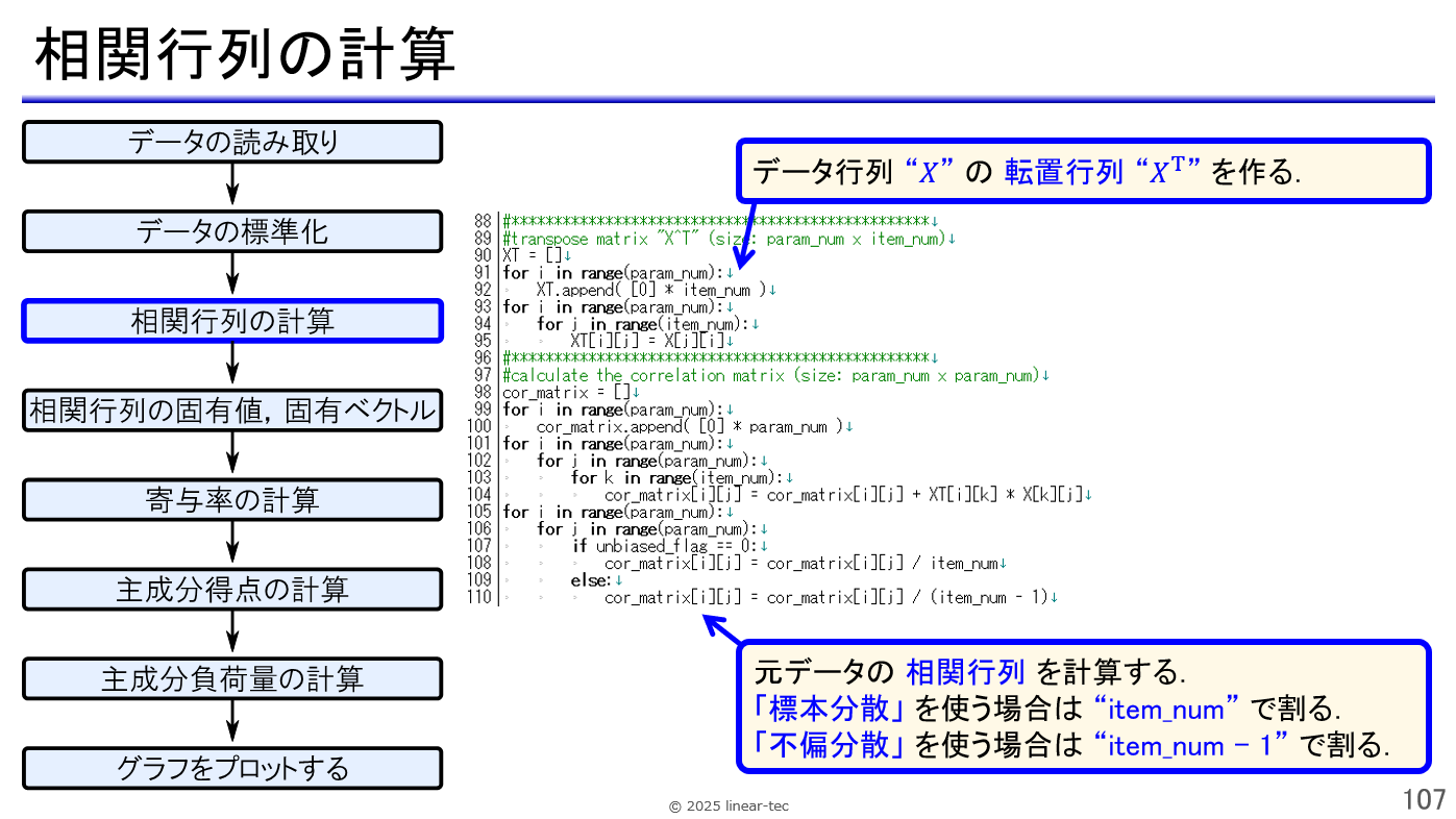 上記の "R" は簡単に統計解析を実行できるので便利ですが,1つのコマンドで計算処理が終わってしまうので具体的な計算の内容がわかりません.そこで,プログラミング言語 "Python"(パイソン) を使って自力ですべての処理をコーディングしてみます.